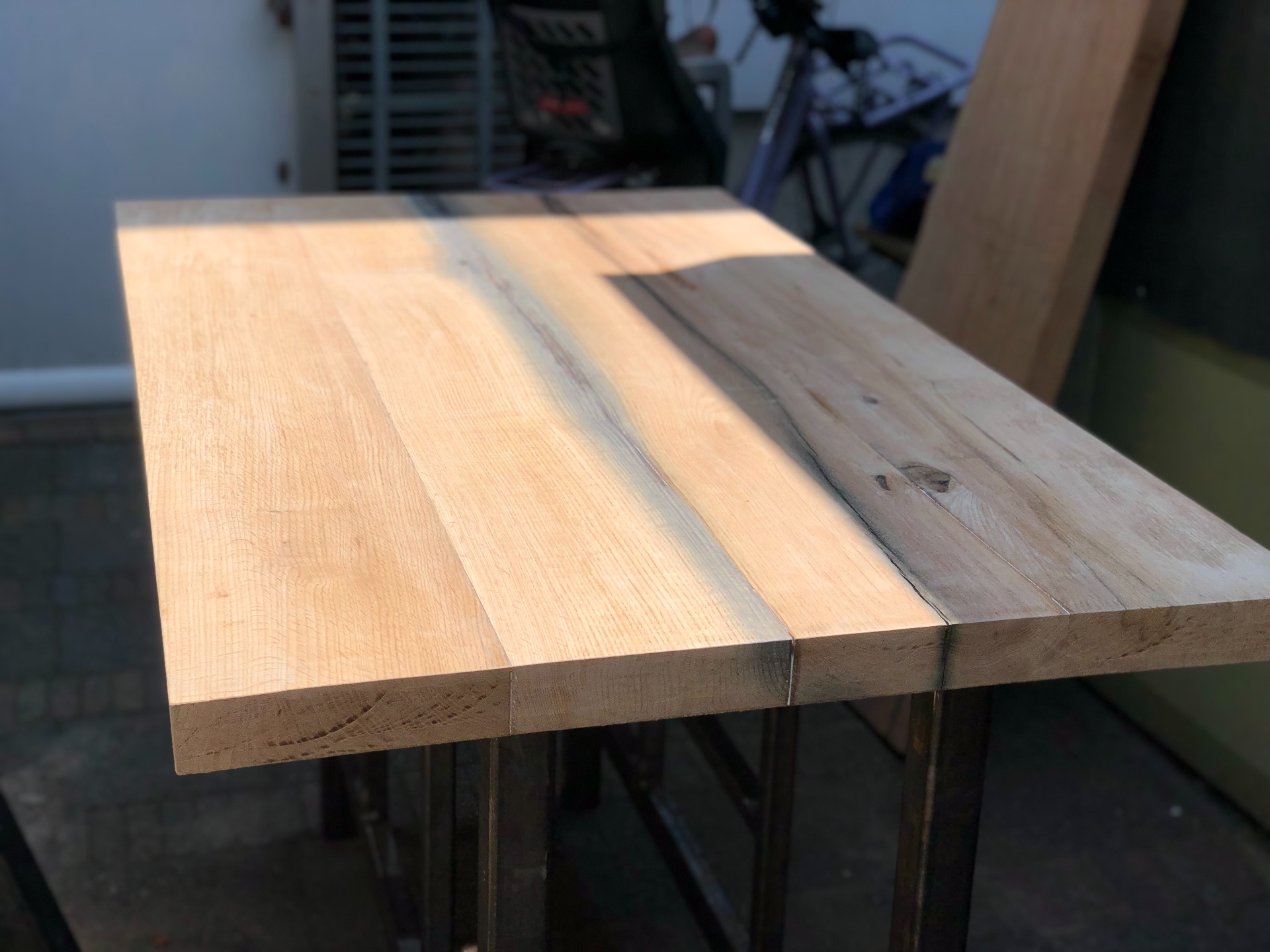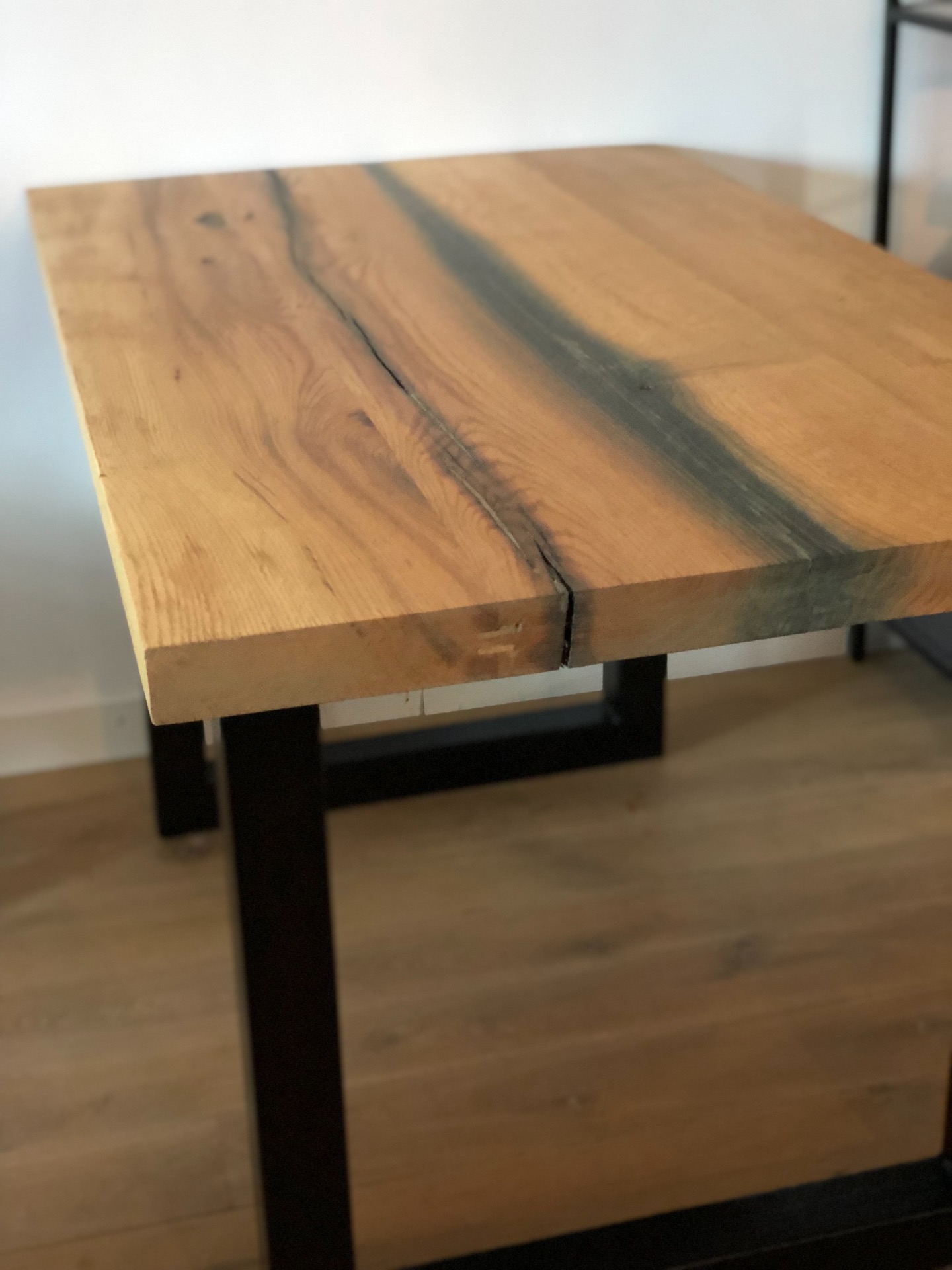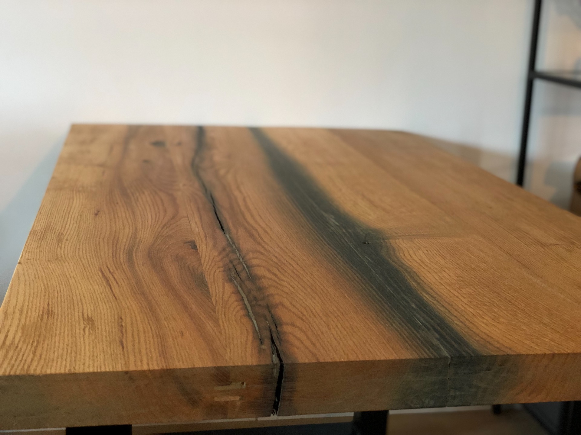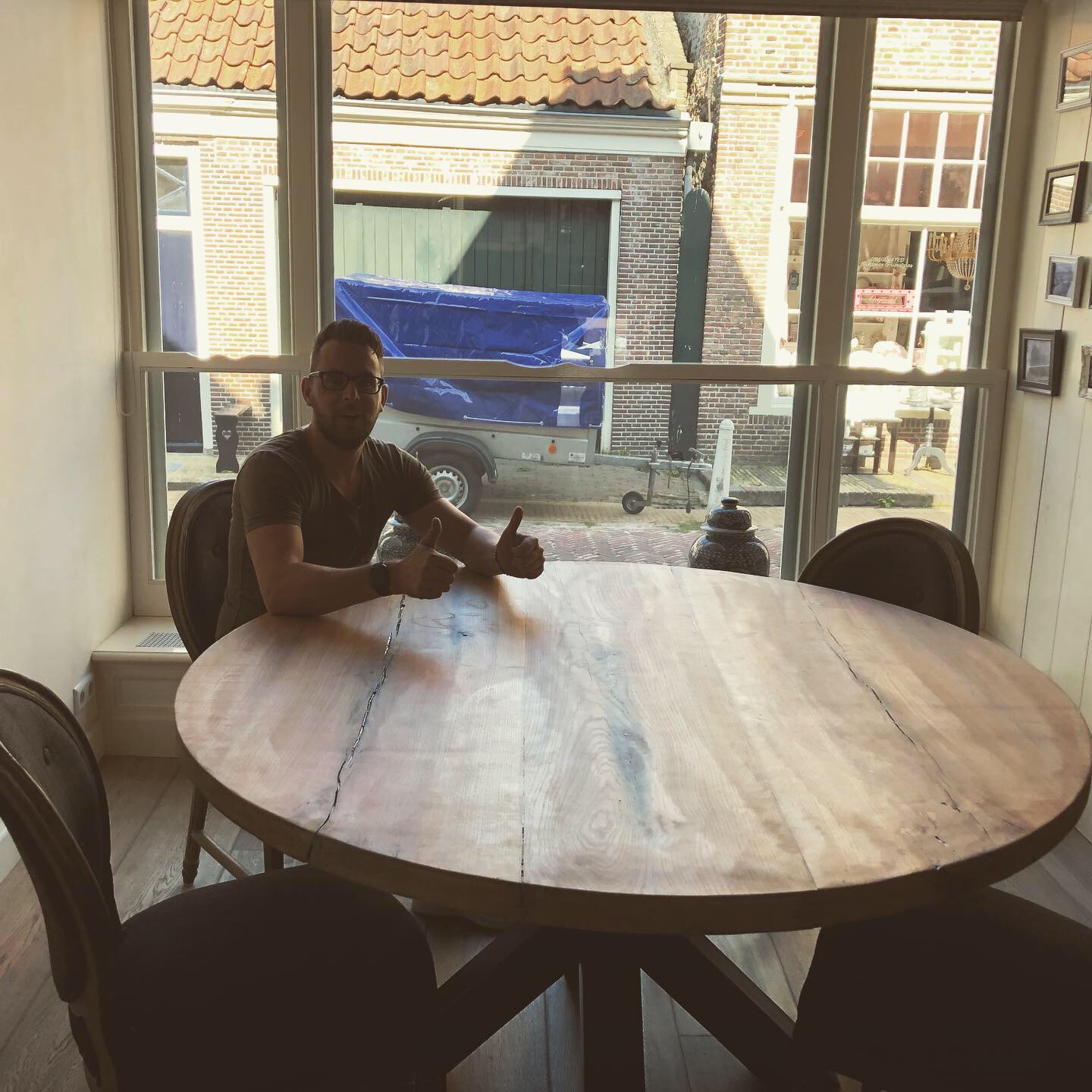 Hout is een natuur product en werkt altijd. Uitgewerkt hout bestaat niet. Het kan uitzetten door vocht en bij droge lucht kan het gaan krimpen. Het hout wordt goed gedroogd voordat we ermee aan de slag gaan. We raden altijd aan het tafelblad goed te laten behandelen met een mooie houtolie. Zodat je jaren lang plezier hebt van jouw tafel. Ook bevestigen wij aan de onderzijde van het tafelblad een stalen strip voor extra stevigheid.